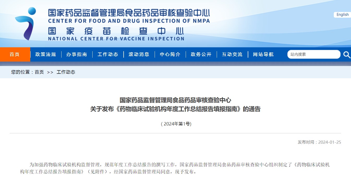 國(guó)家藥品監(jiān)督管理局食品藥品審核查驗(yàn)中心關(guān)于發(fā)布《藥物臨床試驗(yàn)機(jī)構(gòu)年度工作總結(jié)報(bào)告填報(bào)指南》的通告