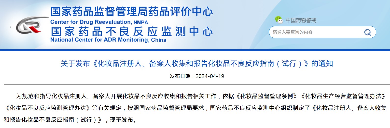 關(guān)于發(fā)布《化妝品注冊人、備案人收集和報(bào)告化妝品不良反應(yīng)指南(試行)》的通知