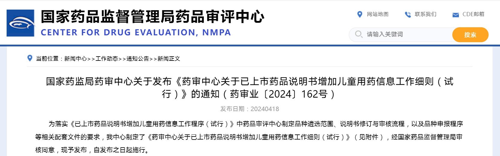 國家藥監(jiān)局藥審中心關(guān)于發(fā)布《藥審中心關(guān)于已上市藥品說明書增加兒童用藥信息工作細(xì)則(試行)》的通知