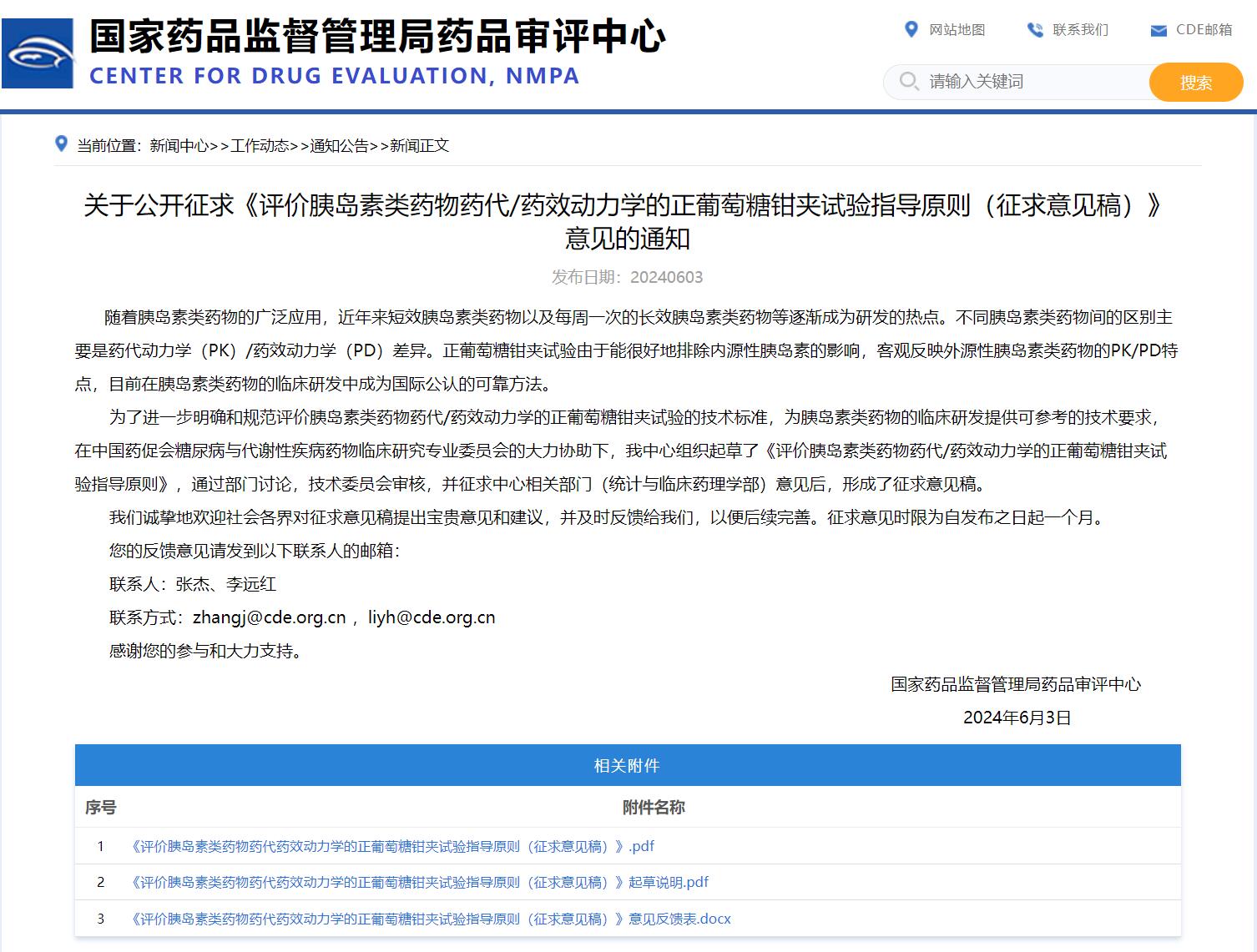 國家藥監(jiān)局藥審中心關(guān)于公開征求《評價胰島素類藥物藥代/藥效動力學(xué)的正葡萄糖鉗夾試驗指導(dǎo)原則(征求意見稿)》意見的通知