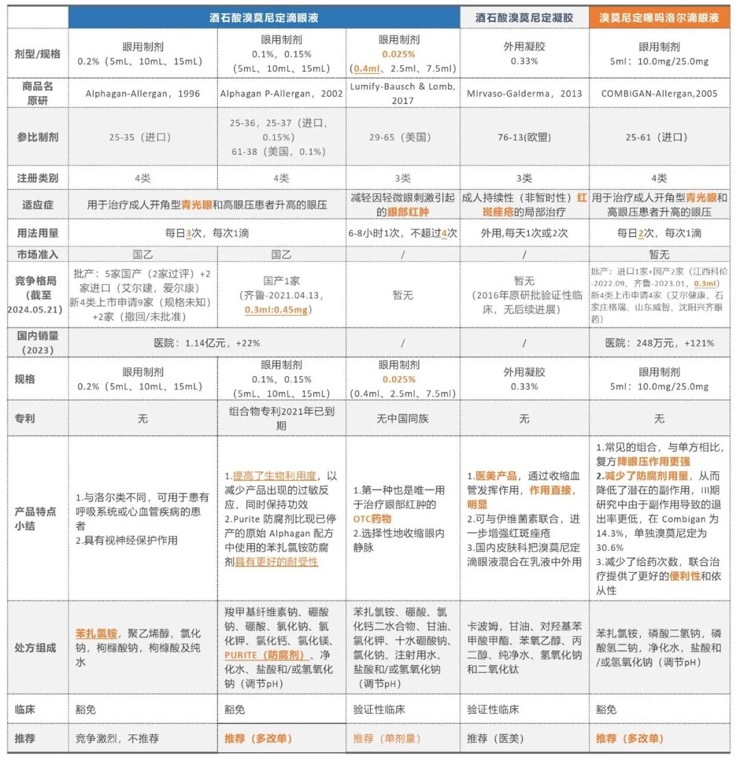 建議開發(fā)改善安全性的0.01%/0.15%滴眼液、低濃度0.025眼部紅腫產(chǎn)品、復方制劑,持續(xù)關注醫(yī)美外用凝膠進口動向。