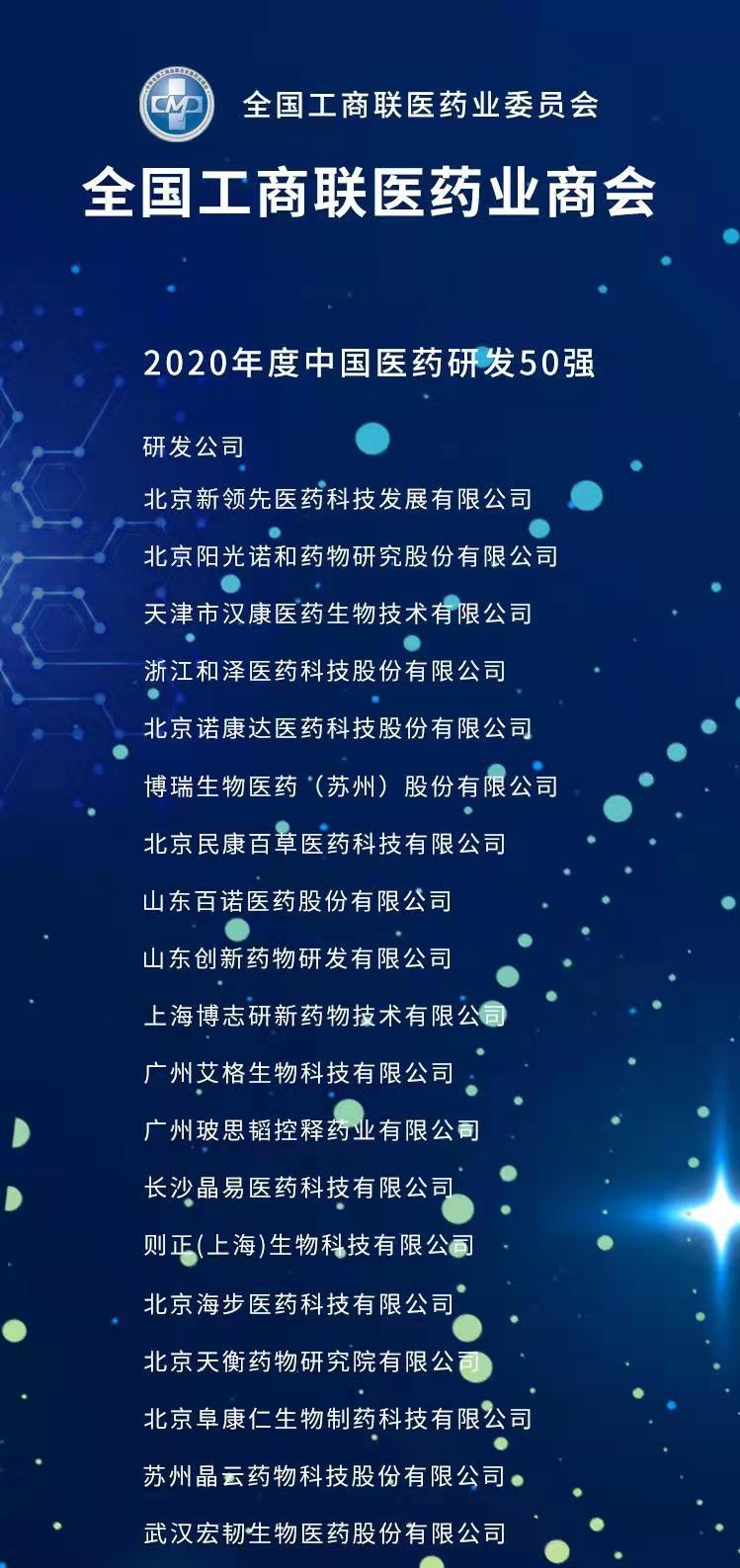 Top 50 Growth of Chinese Pharmaceutical Industry in 2020"